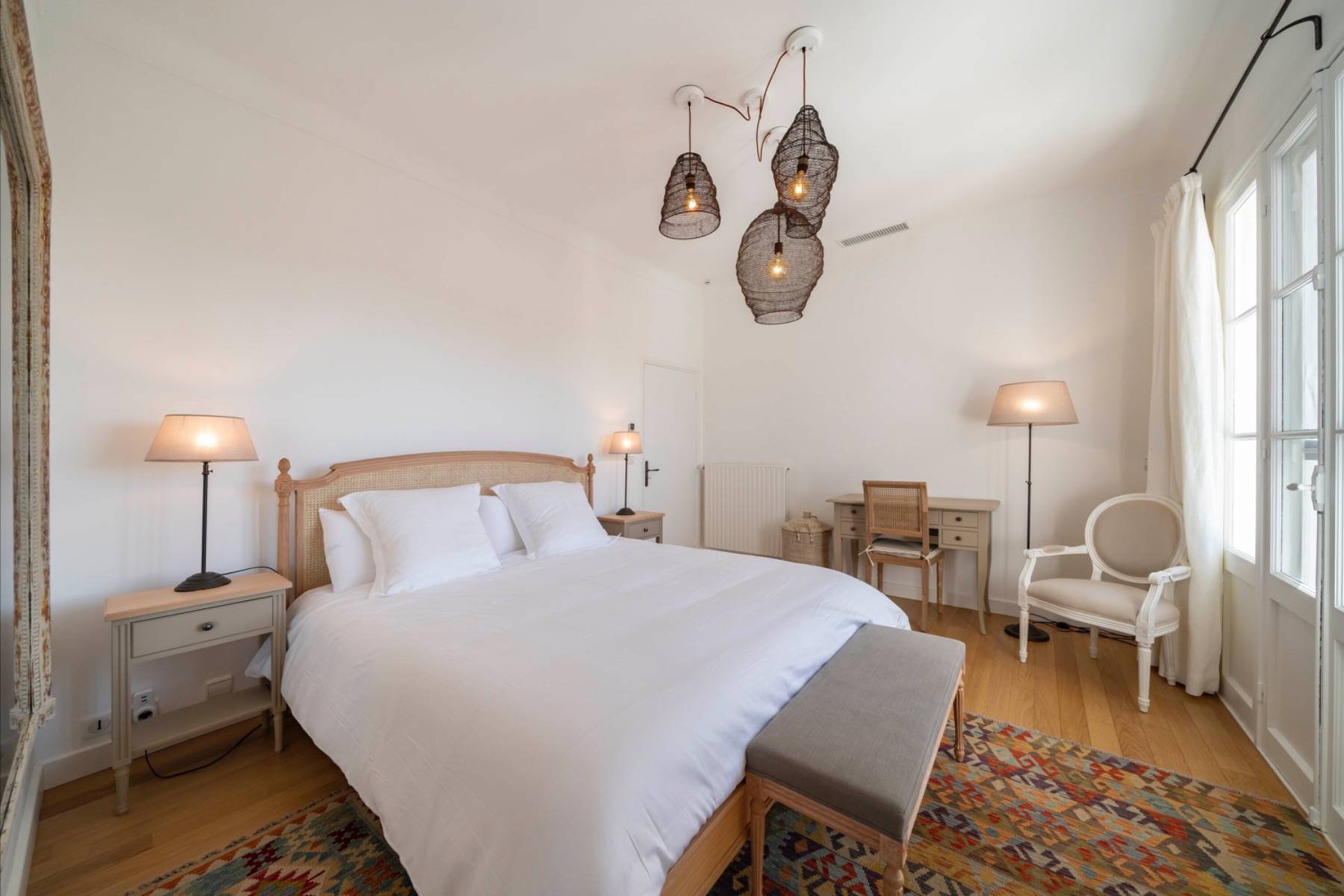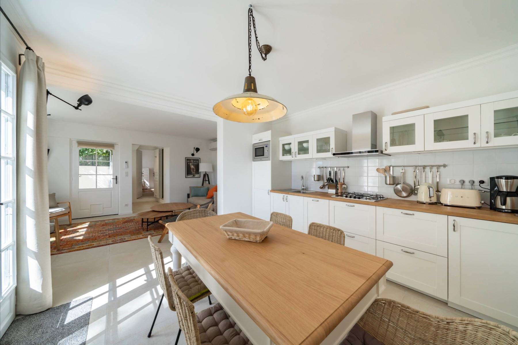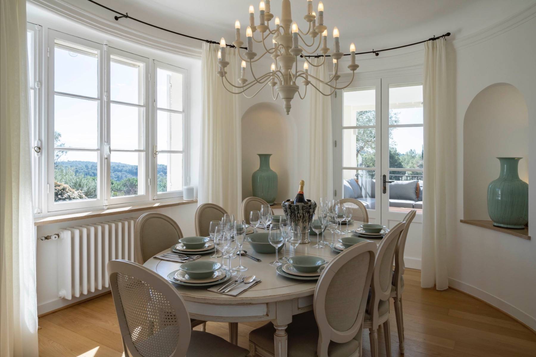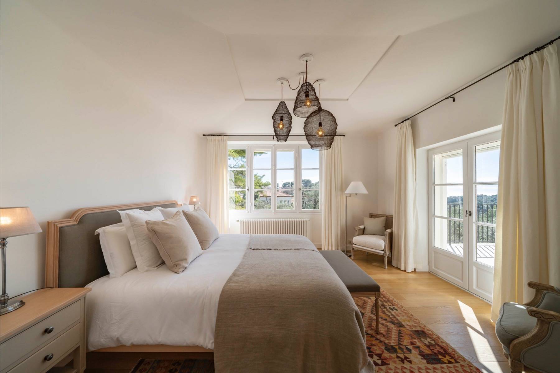 Die alte stattliche Villa fügt sich perfekt in die Umgebung ein und wurde im Stil von Vence renoviert: modern und stilvoll, hell und weiß, mit vielen Farbakzenten und besonderer Kunst, wahrscheinlich inspiriert oder beeinflusst vom malerischen Saint Paul de Vence .