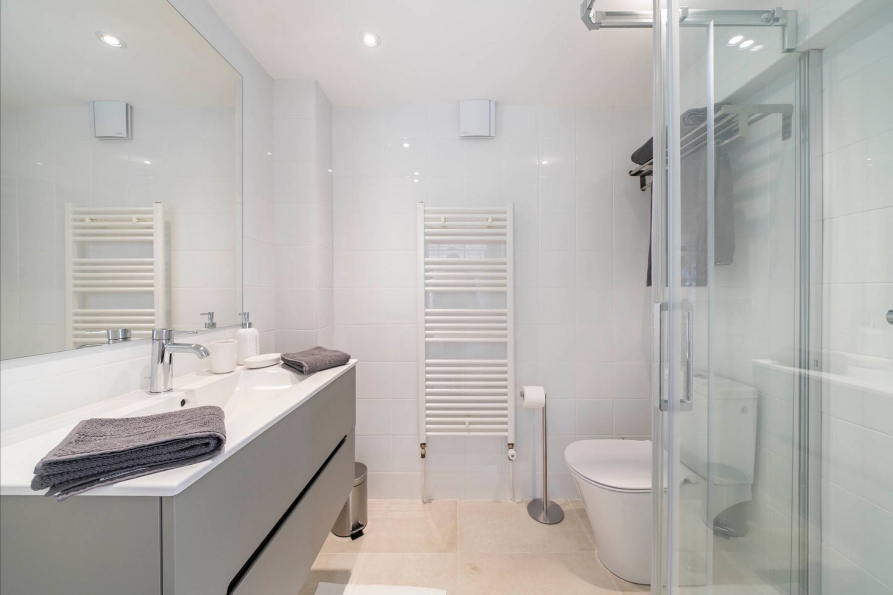 Die vier schönen Schlafzimmer sind attraktiv mit weißen, hellen und sandfarbenen Akzenten eingerichtet. Alle Schlafzimmer haben ein eigenes komfortables blau / weißes Badezimmer mit Dusche, WC und / oder Badewanne. In der Pension gibt es zwei weitere Schlafzimmer, jedes mit eigenem Bad.