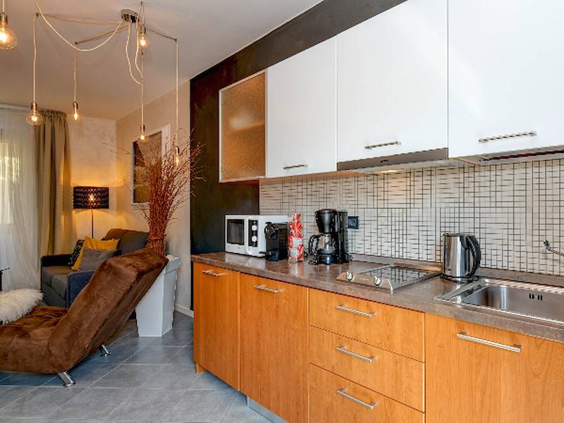 Abends lassen Sie sich in einem von Restaurants im Ort verwöhnen oder nutzen die voll ausgestatte Küche. Zwei Restauranten/Pizzeria mit Panoramaseeblick befinden können Sie in 2 Minuten zu Fuß erreichen.