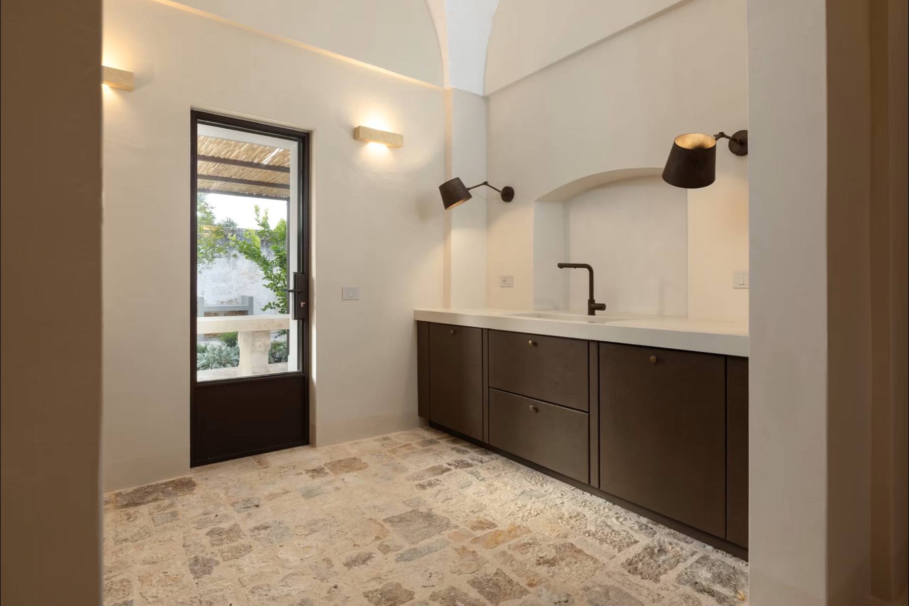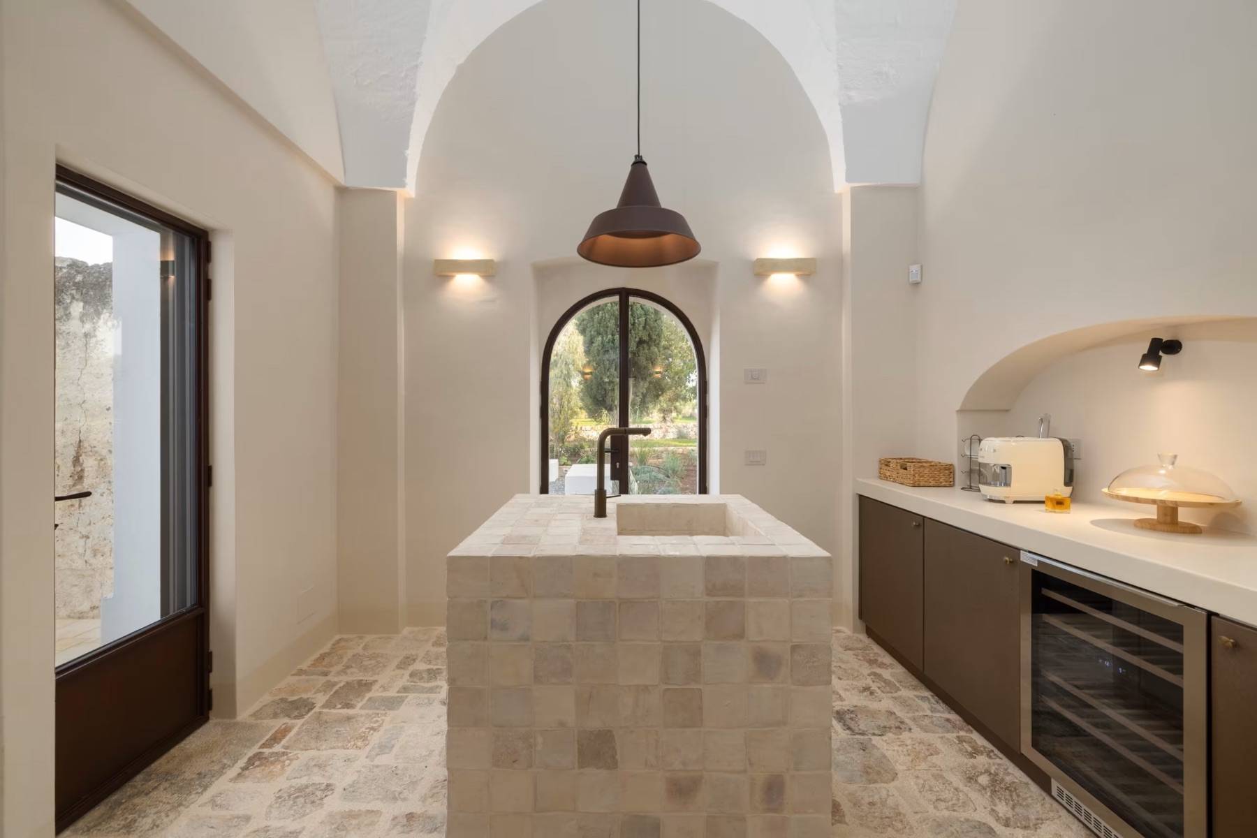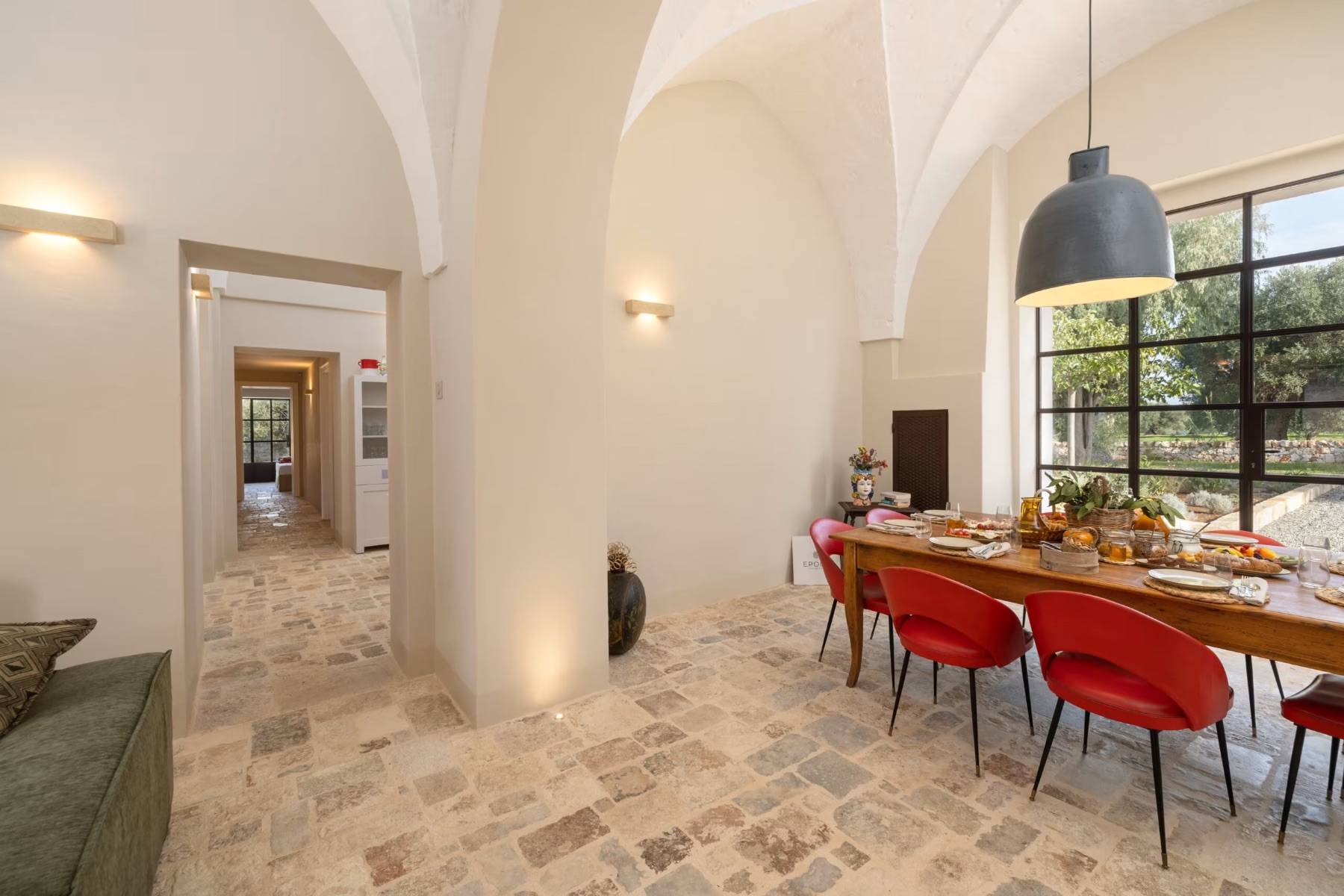 Die Villa verzaubert durch ihr edles Ambiente, gepaart mit modernen Einrichtungsgegenständen und höchstem Komfort. Die naturbelassenen Steinböden und die hohen Kathedraldecken untermauern diese einzigartige Atmosphäre.