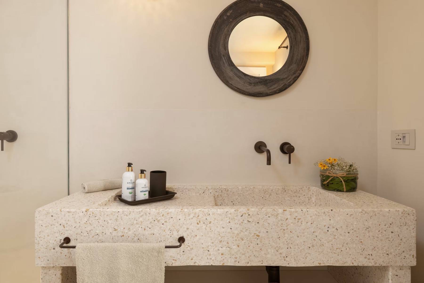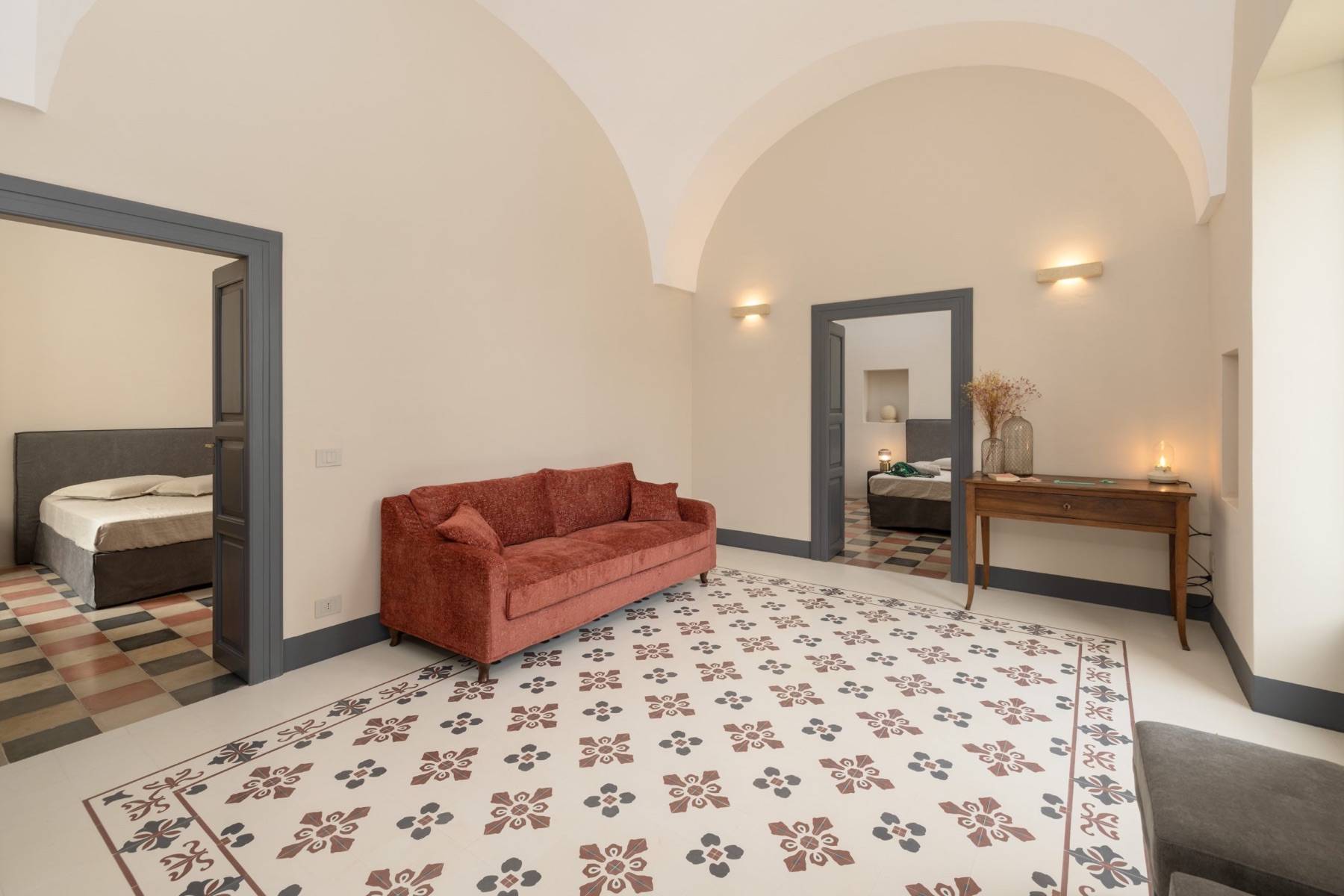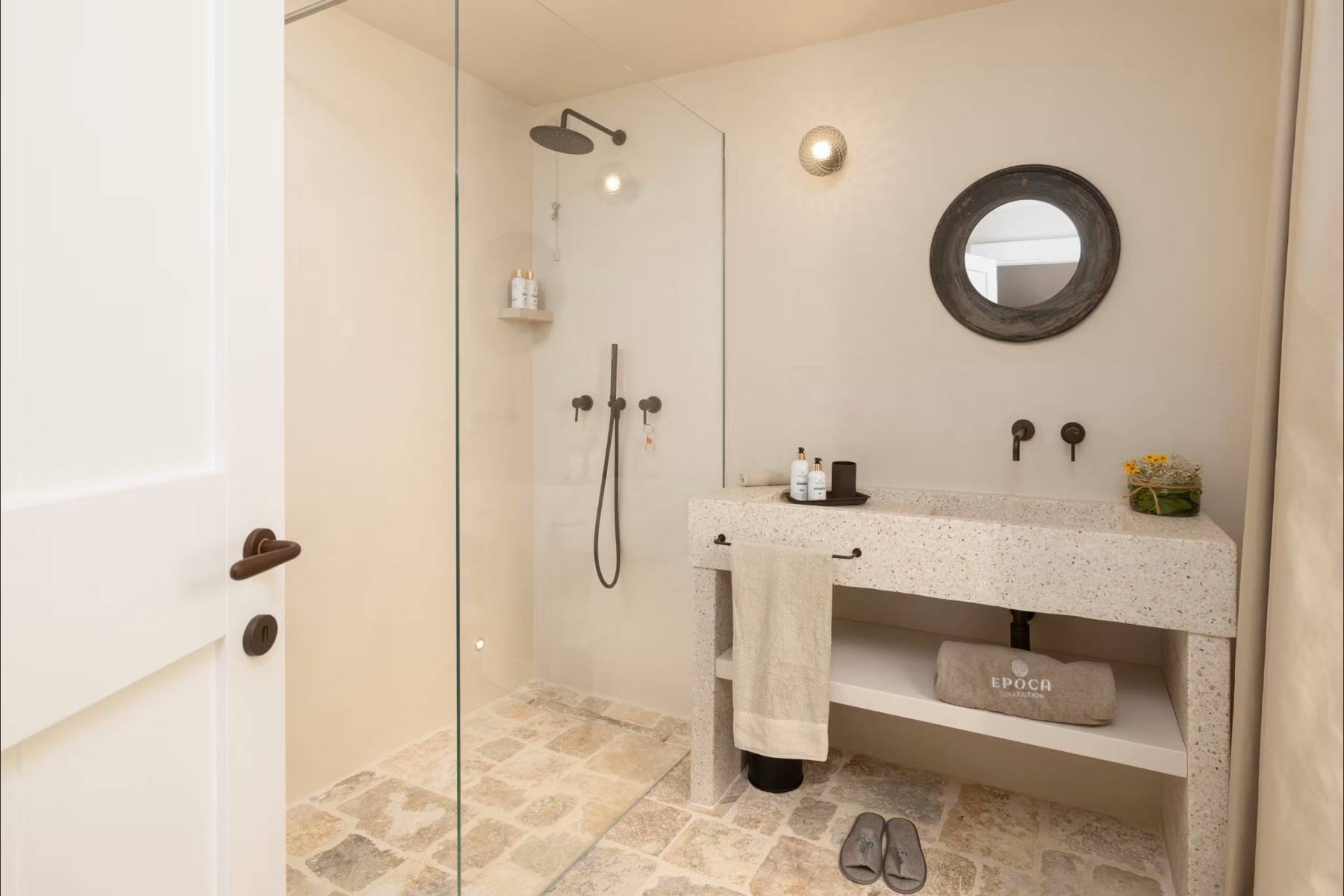 Die Villa verzaubert durch ihr edles Ambiente, gepaart mit modernen Einrichtungsgegenständen und höchstem Komfort. Die naturbelassenen Steinböden und die hohen Kathedraldecken untermauern diese einzigartige Atmosphäre.