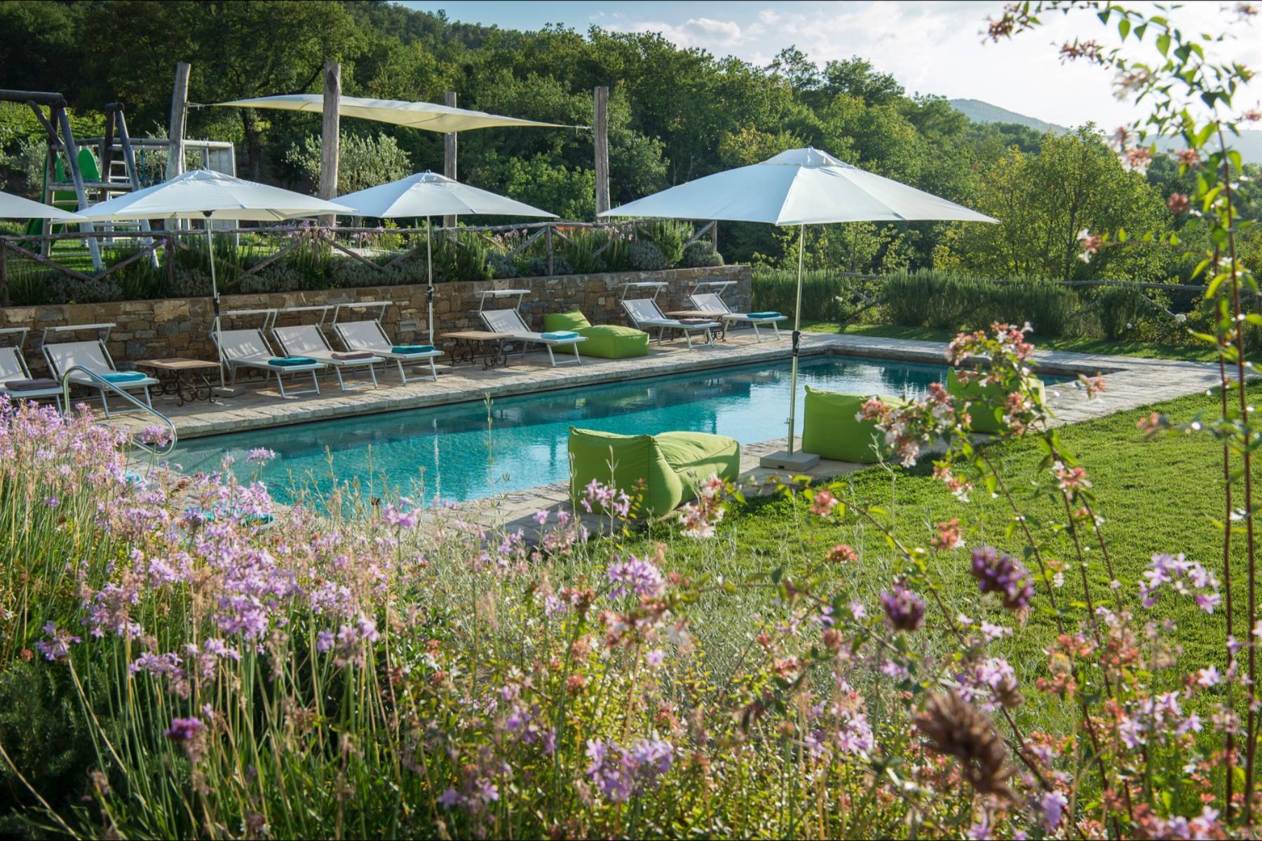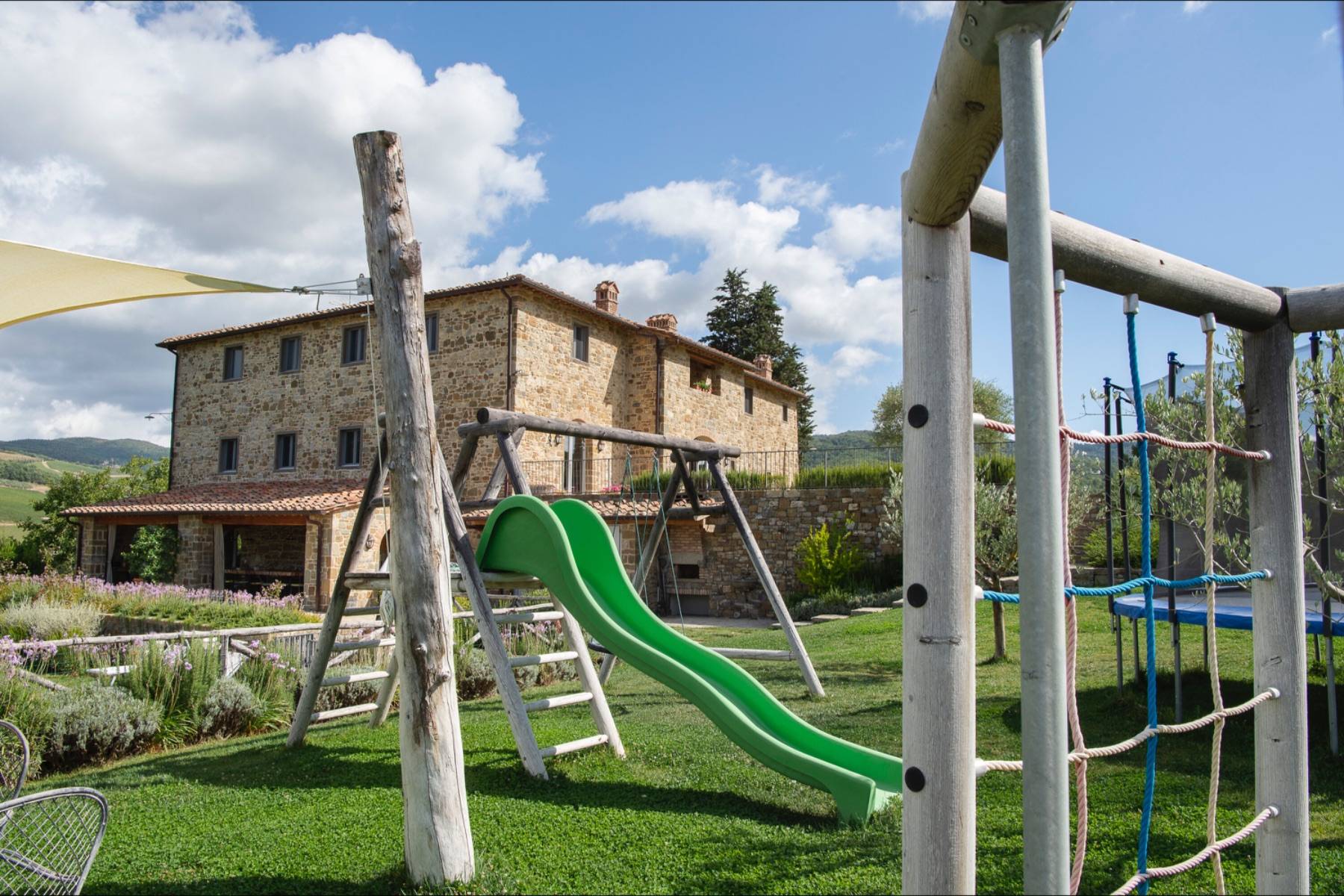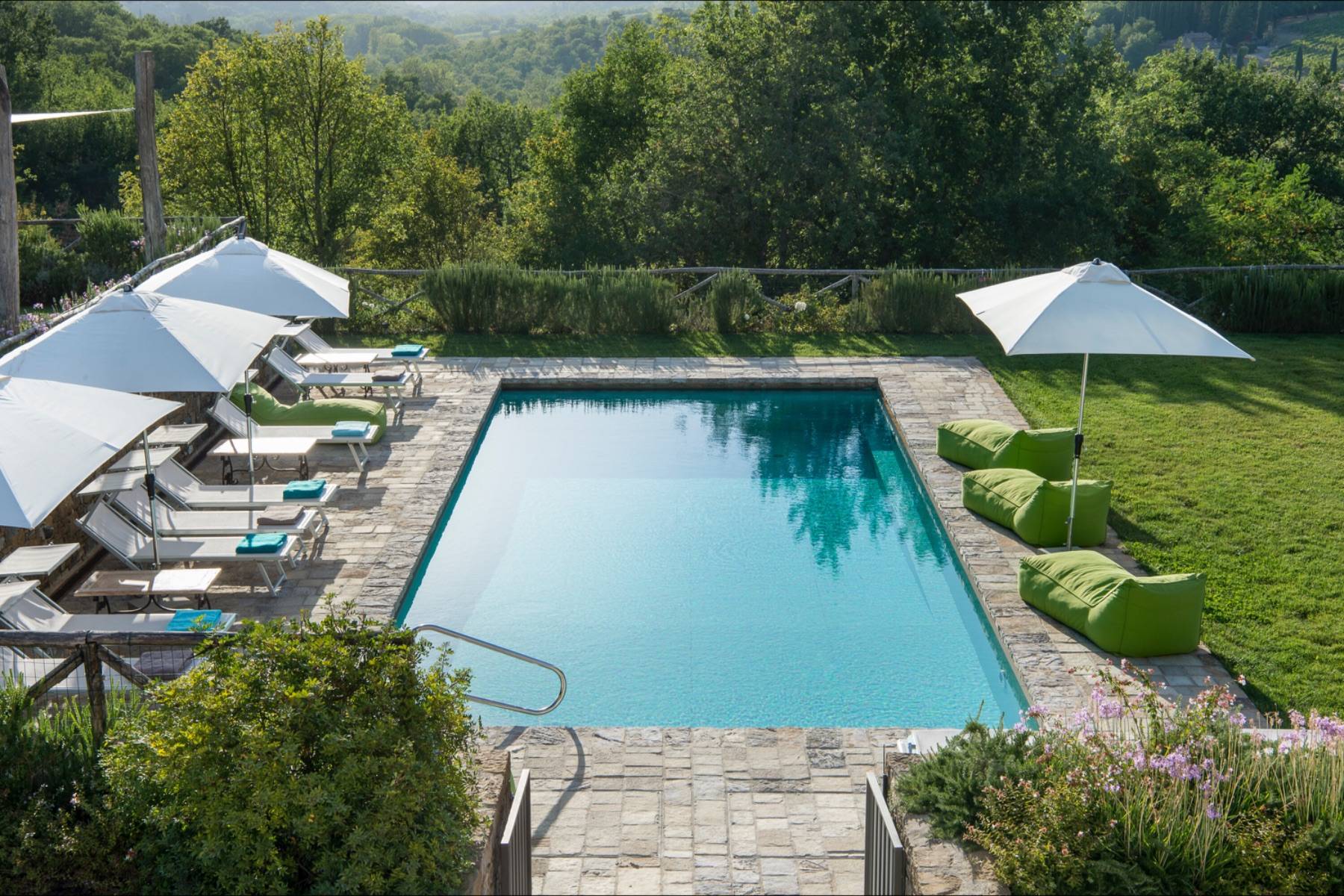 Auf dem Grundstück befindet sich ein schöner Pool mit Blick auf die Hügel des Chianti. Es gibt auch einen Kinderspielplatz - für