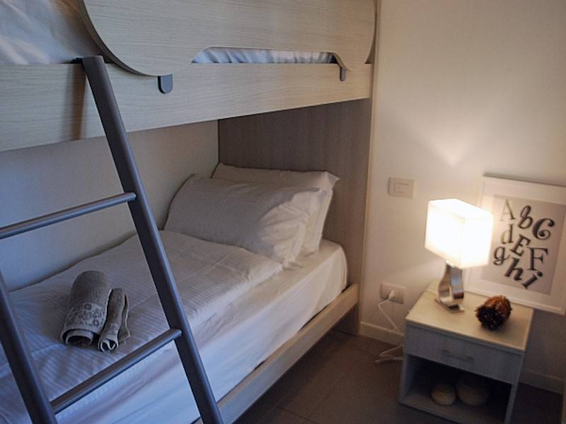 Die Wohnung ist eine Dreizimmerwohnung von rd. 80 Quadratmeter und bietet Platz für 2 bis 4 Personen. Im Inneren finden wir ein Wohnzimmer mit Küchenzeile, möblierten Balkon, Bad mit Dusche, Schlafzimmer mit Doppelbett und Schlafzimmer mit Etagenbett, Garage und Gemeinschaftspool. Zum Komfort gehört eine Küche mit 4 Kochplatten und Dunstabzugshaube, Backofen, deutscher Kaffeemaschine, Toaster, Wasserkocher, Kühlschrank mit Gefrierfach, Geschirrspüler, Waschmaschine, Sat-TV, Garage, WLAN und Gemeinschaftspool.