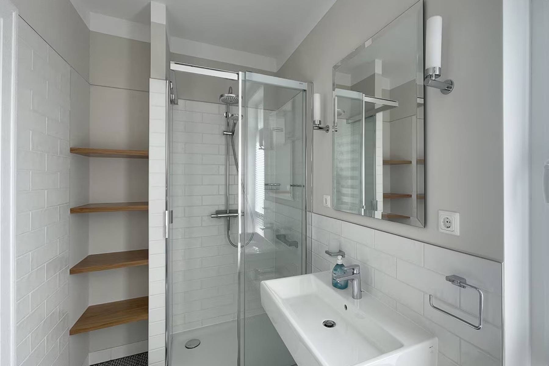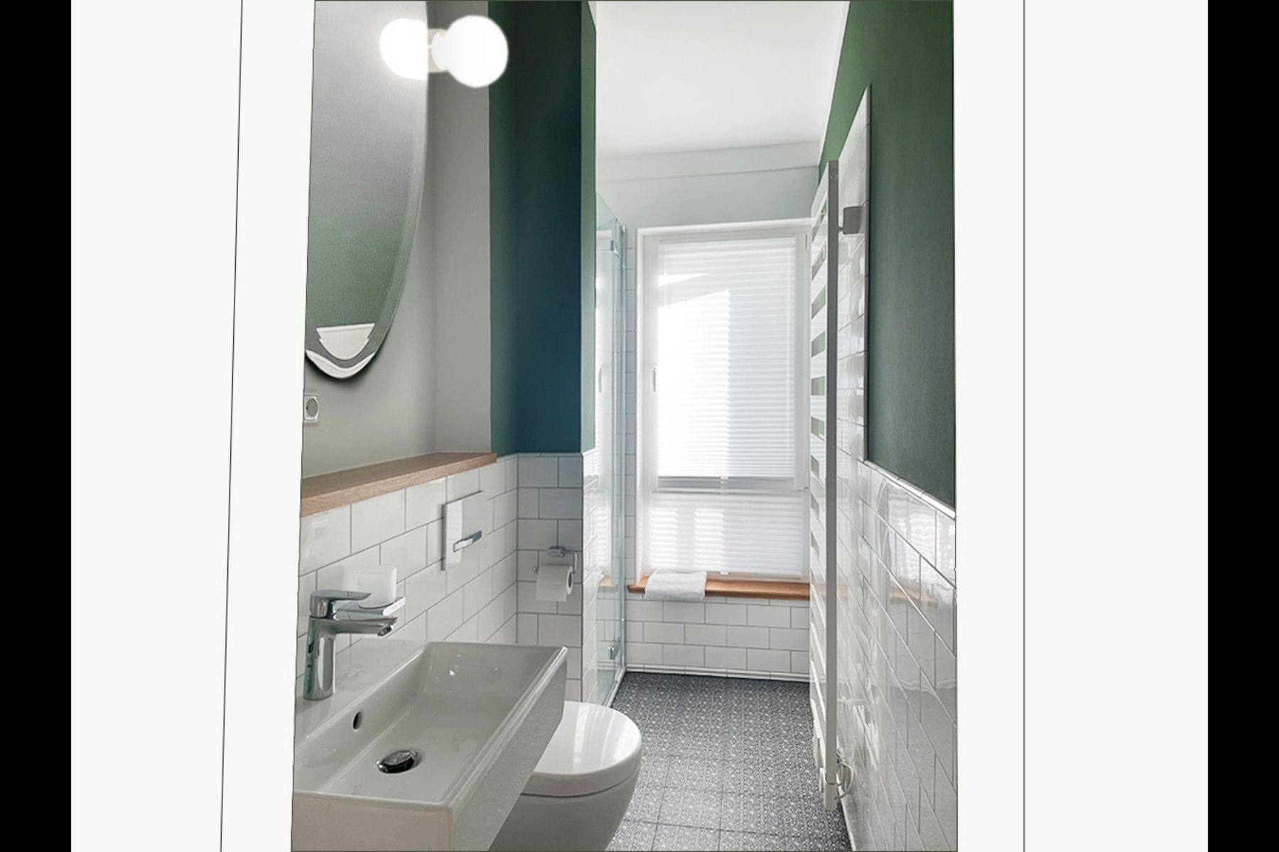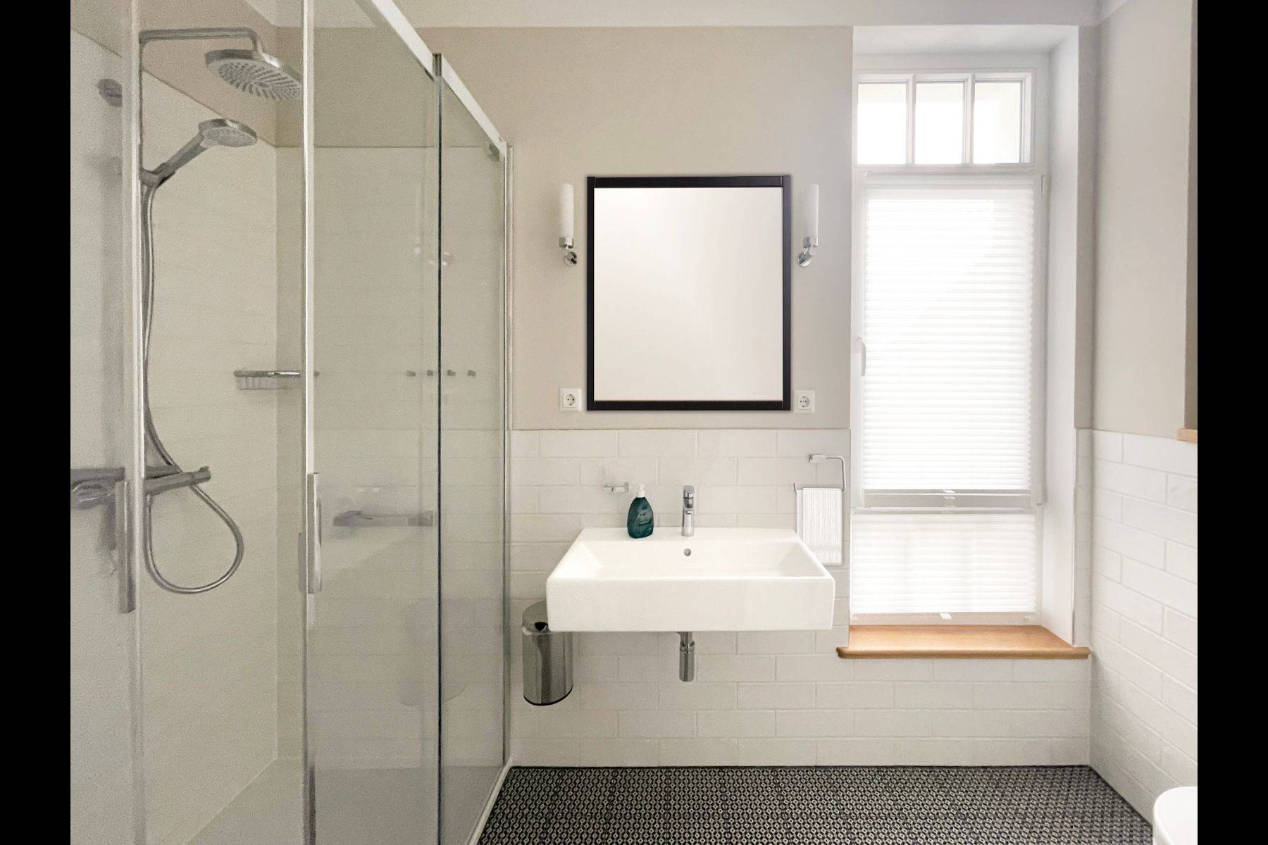 Alle Wohnbereiche verfügen über Echtholz Fußböden und überhohe Innentüren.