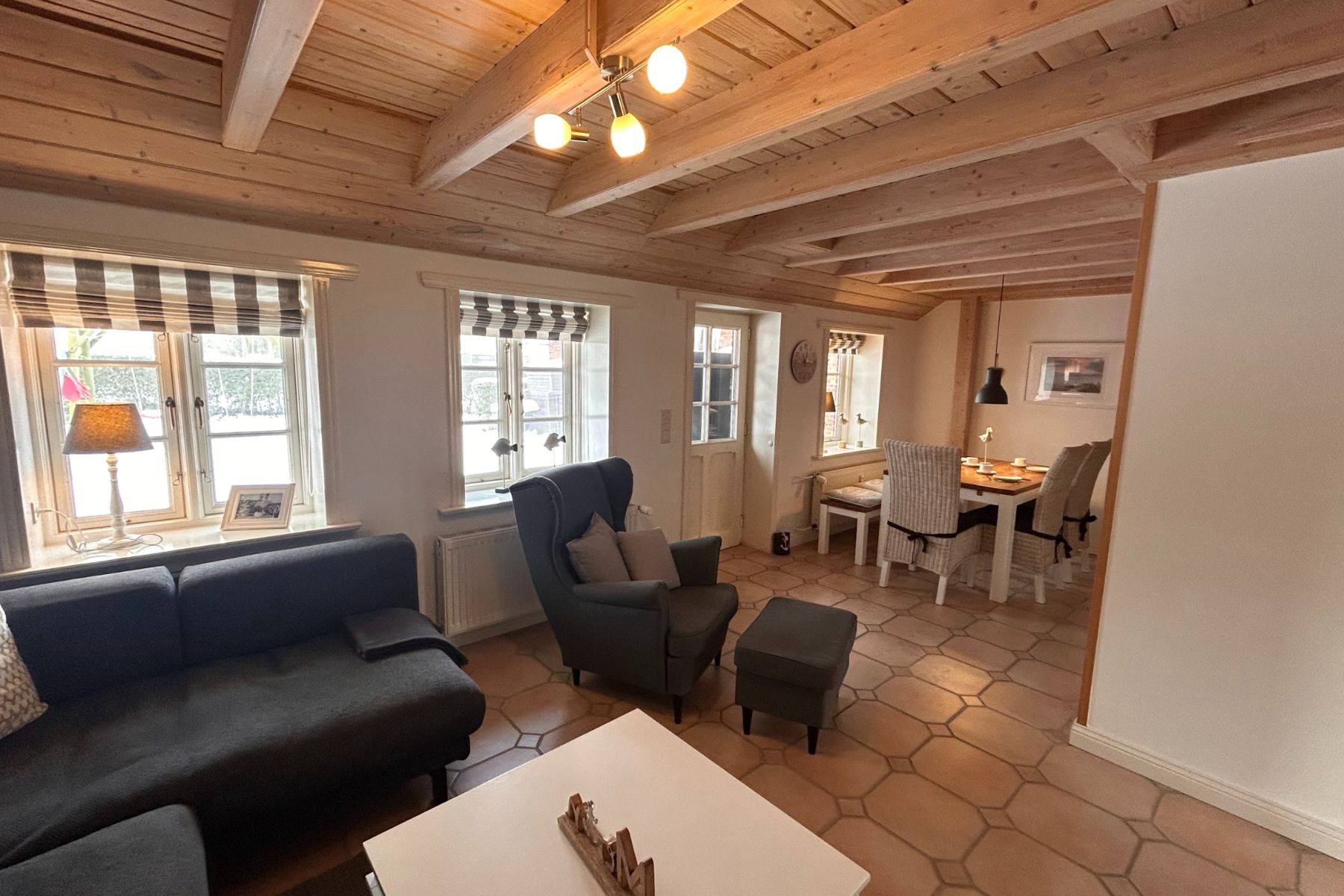 Die Ferienwohnung „Hygge“ liegt in einem liebevoll erhaltenen historischen Friesenhof im idyllischen Wrixum und ist ein wunderbarer Ort für Familien, die Ruhe, Gemütlichkeit und echtes Inselgefühl suchen. 2023 frisch renoviert, verbindet die Wohnung maritimen Charme mit modernem Komfort – ganz im Sinne des dänischen Lebensgefühls Hygge.